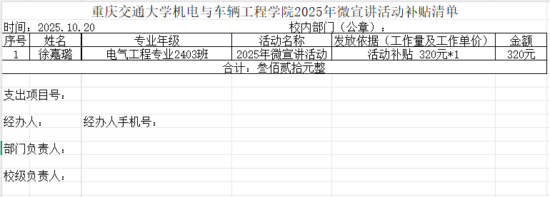 重庆交通大学机电与车辆工程学院2025年微宣讲活动补贴清单
