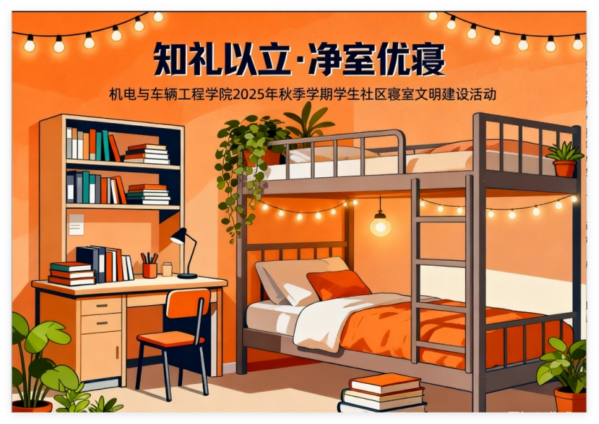 为扎实推进“一站式”学生社区建设,筑牢社区育人阵地,2025年以来机电学院积极响应学校号召,精心组织开展了“知礼以立·净室优寝”学生社区文明寝室建设系列活动,取得了显著成效。