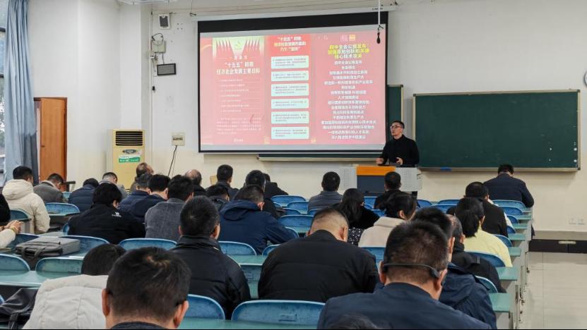 会上,刘建新书记作党的二十届四中全会精神专题宣讲。他系统阐述了全会召开的时代背景、重大意义和核心要义,结合市委六届八次全会部署要求,解读了“加快高水平科技自立自强,引领发展新质生产力”等关键部署,并强调要将全会精神与学院发展实际紧密结合,传承弘扬“两路”精神,以党建统领学院各项事业高质量发展。刘书记还围绕 “书记三带头”“新春六件事”作专题汇报,详细介绍了学院在讲好 “两路” 故事、推动学科专业转型升级、深化 AI 数智赋能等方面的举措与成效。