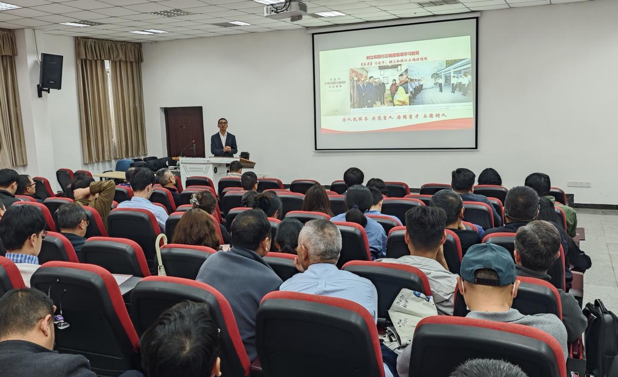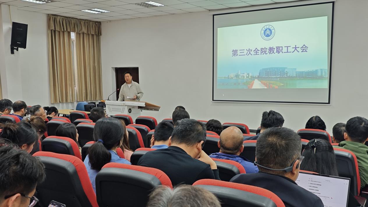 4月29日,机电学院在南岸校区10101报告厅召开2026年第三次全体教职工大会。会议深入学习贯彻习近平总书记最新重要讲话和指示精神,传达学校近期重要会议决策部署,系统安排学院年度重点工作,并组织开展消防安全专题教育培训。学院党委书记刘建新主持会议,领导班子成员及全体教职工参会。