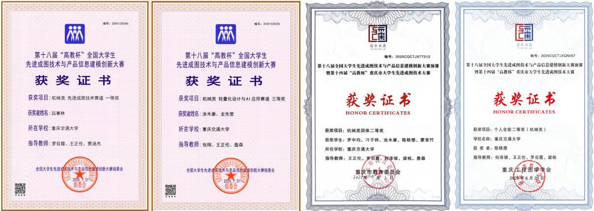 机电与车辆工程学院有110名同学参赛,经过校赛选拔、市赛比拼,共有2支队伍顺利进入全国总决赛。经过3天的激烈角逐,我校学生在机械类赛道中,获全国团体类二等奖1项,团体三等奖1项,轻量化设计与AI应用赛道全国三等奖1项,个人先进成图赛道一等奖1项,二等奖3项,三等奖3项。在重庆市大学生先进成图技术与产品信息建模创新大赛中获团体二等奖1项,个人全能二等奖11项,个人全能三等奖12项。