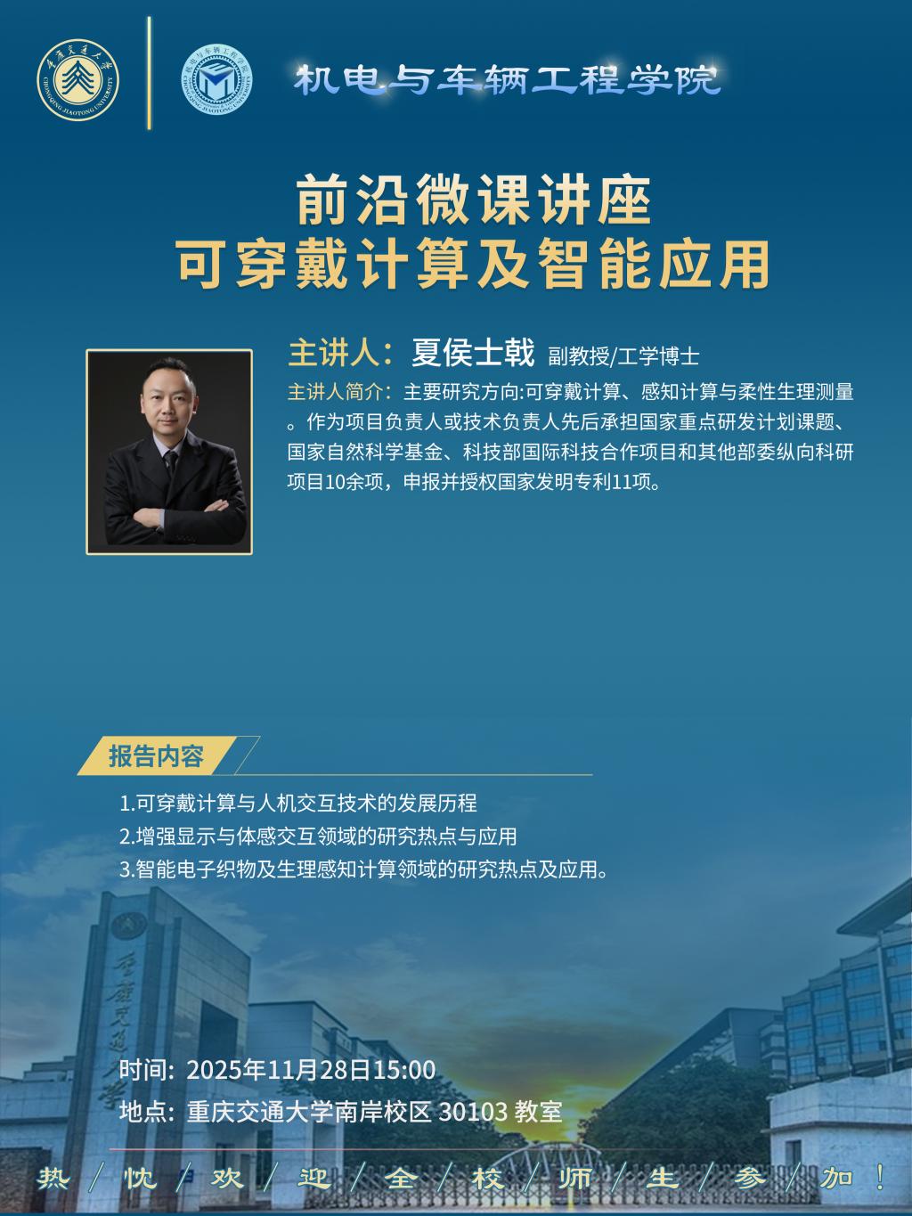 机电与车辆工程学院前沿微课讲座:可穿戴计算及智能应用