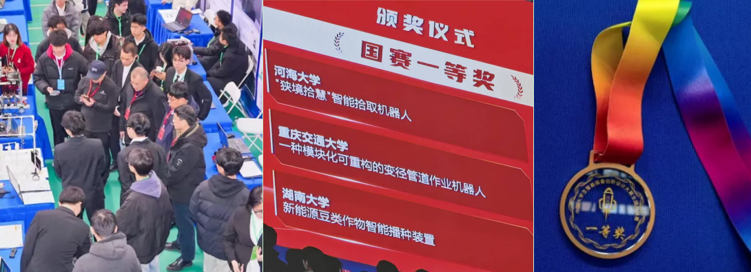 近日,在天津大学举行的2025中国大学生智能装备创新设计大赛传来喜讯,由我院学生段俊宇、胡宇成和陈迁宇组成的核心团队,凭借项目《一种模块化可重构的变径管道作业机器人》,历经全国1600多支参赛队伍的函评、线上答辩等多轮严格选拔激烈角逐,成功晋级国赛决赛,并在243支决赛队伍中脱颖而出,荣获国赛一等奖。