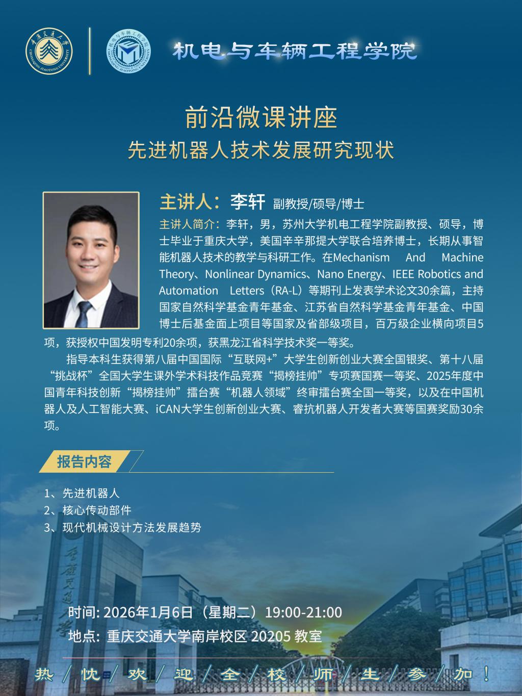 机电与车辆工程学院前沿微课:先进机器人技术发展研究现状