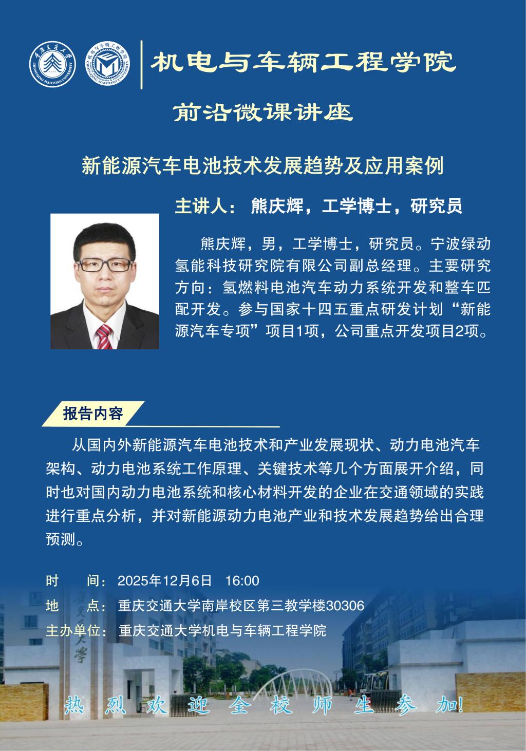 机电与车辆工程学院前沿微课:新能源汽车电池技术发展趋势及应用案例