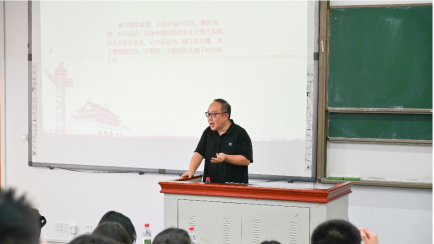 在庄重而崇敬的氛围中,胡东书记首先带领同学们系统回顾了中国共产党百年奋斗的光辉历程。借助珍贵的历史影像和详实的数据对比,一幅幅波澜壮阔的历史画卷在同学们眼前徐徐展开,生动展现了党团结带领人民从站起来、富起来到强起来的伟大飞跃。这一历程深刻阐释了党始终葆有的蓬勃生机与强大凝聚力,让同学们对党的伟大有了更为直观和深刻的认识。随后胡书记围绕“为什么要入党”这一核心问题,通过正反案例的鲜明对比进行了详细的阐述,他强调新时代青年要用坚定政治素质锚定前行方向,以深厚理论素质提升思维高度,凭高尚道德素质彰显人格风范,靠严格纪律素质坚守行为底线,用真挚群众素质汇聚磅礴力量,借蓬勃创新精神开拓崭新局面,为成为新时代的合格党员而不懈努力。