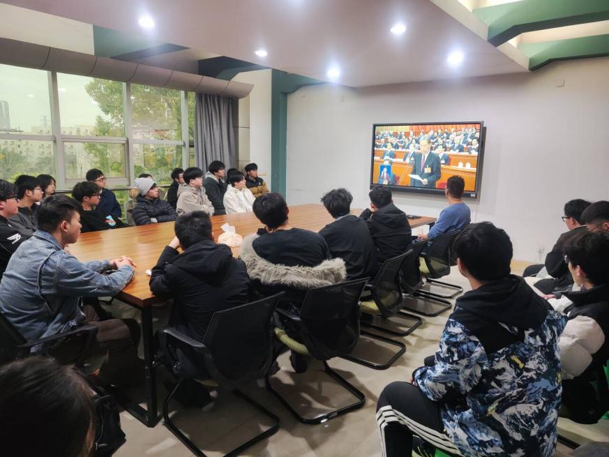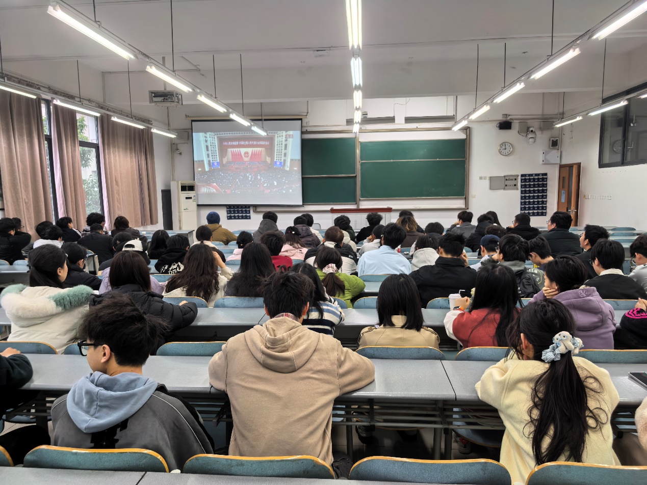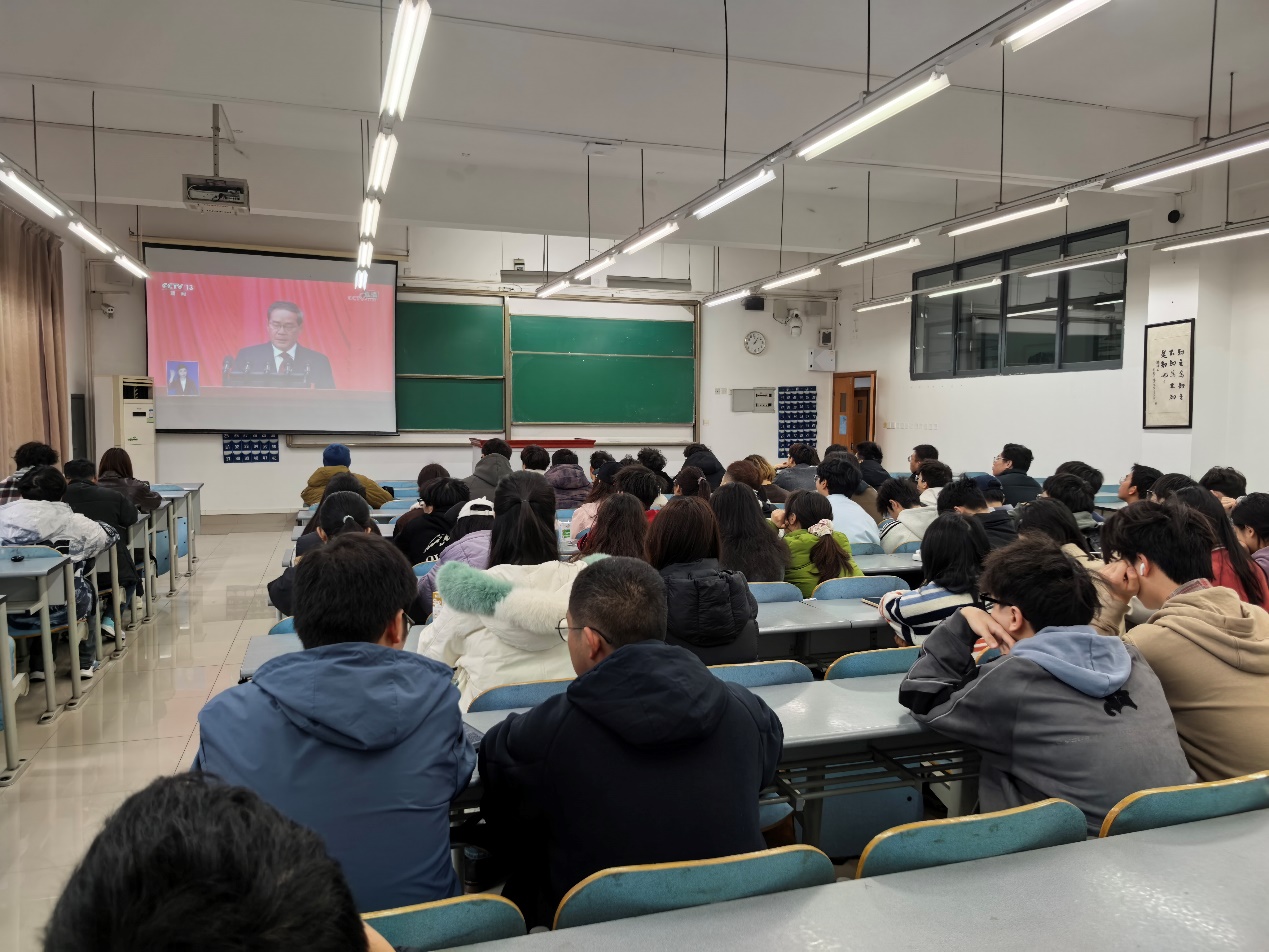 直播过程中,同学们全神贯注观看会议盛况,聆听报告内容,悉心领悟报告精神。从经济发展的亮眼成绩单到科技创新的突破进展,从民生保障的暖心举措到社会治理的持续完善……感受过去一年国家在各领域取得的辉煌成就,师生们更加清晰了解到新一年国家在推动高质量发展、强化基层治理、优化民生服务、促进民族团结、加强生态保护等方面的工作安排与目标任务。