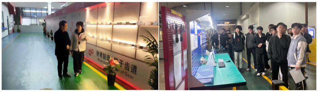 在公司领导的陪同下,学院师生一行深入生产车间、装配测试线等核心区域进行实地参观。精密先进的加工设备、严谨规范的生产管理流程,让同学们近距离感受到了制造业的智能化、自动化发展趋势与企业扎实的制造实力,对课堂所学理论知识在实际生产中的应用有了更直观、深刻的理解。