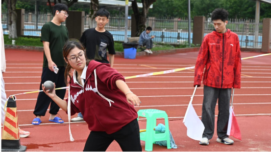 力量与技巧的较量:跳远场地,只见选手风驰电掣般助跑,奋力一跃,沙尘飞扬中,欢呼声瞬间在赛场炸开;铅球区,选手们挥臂发力,沉甸甸的铅球划出一道道优美的弧线。