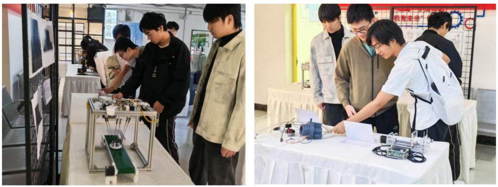 展览期间,“机育未来”驿站人潮涌动,吸引了众多学生驻足参观。不少低年级同学表示,通过近距离观摩学长学姐的作品,不仅拓宽了专业视野,更激发了投身科技创新的浓厚兴趣。“看到这些由同龄人亲手打造的作品,我深刻感受到了‘匠心’的力量,也更加明确了自己未来努力的方向。”一位大三学子在参观后感慨道。