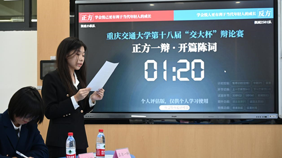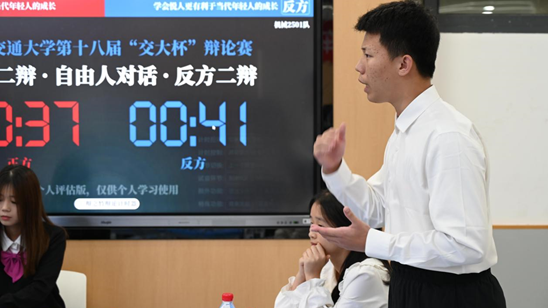 反方“机械一班辩论队”的李昊洋则带领队伍从“社会价值、人际关系”切入,论证“悦人是成长的阶梯,在利他中实现自我价值升华”,攻防有度、论点扎实。