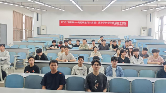 为精准助力学生考研规划,破解备考难题,4月24日机电学院在科学城校区举办了第三期【红“芯”青年说】——“我的研途可以复制”考研经验分享会。活动邀请2026届考研高分录取学生代表,吸引四十余名意向考研学生参与交流。