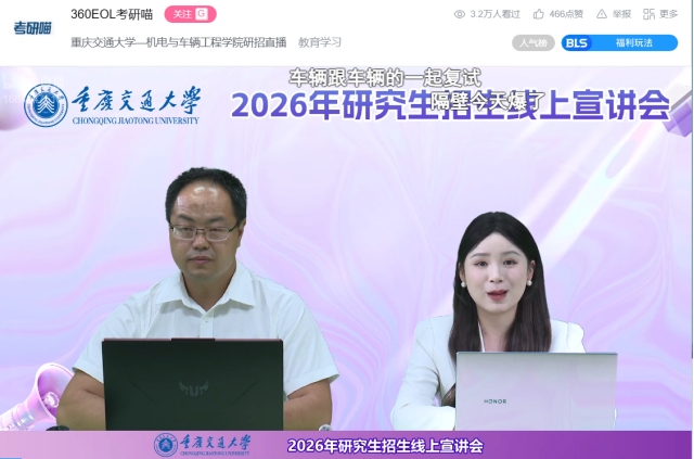 9月17日上午,在研究生院的组织和指导下,机电与车辆工程学院举行了线上招生直播咨询会,副院长陈仁祥教授进行了线上招生宣讲。
