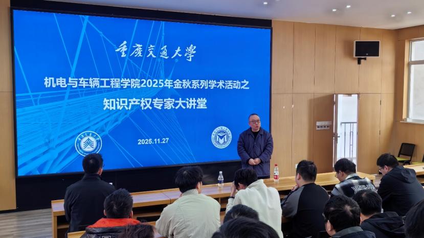 为增强师生知识产权保护意识,规范学术成果产出行为,推进清廉学院建设,2025年11月27日下午,机电学院在南岸校区一教301会议室举办“金秋系列学术活动之知识产权专家大讲堂”,特邀重庆知识产权法庭四级调研员吴小忠法官作专题报告。讲座由学院学科与研究生管理办公室主任束海波主持,学院党委书记刘建新、纪委书记胡东以及青年教师、研究生代表等100余人参会。